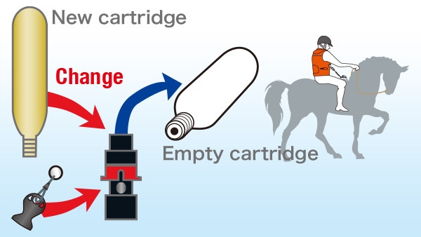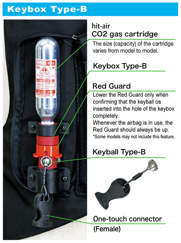 Then a needle in the “key box” is activated and punctures the seal of the gas cartridge to inflate the Hit-Air instantly.