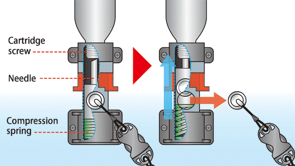 Otherwise, a needle in the “key box” may not puncture the seal of the CO2 cartridge and Hit-Air may not be activated properly.