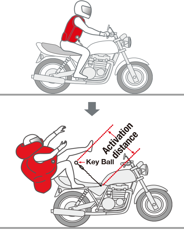 - When the red slide cover is in the ‘locked’ (down) position, the “key ball” cannot be released from the “key box”, then the Hit-Air will not be activated. This may cause an injury to the rider in case of an accident. Whenever using the Hit-Air, make sure the red slide cover is in the ‘unlocked’ (up) position.