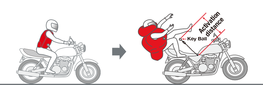 - As soon as the “activation distance” is reached, the Hit-Air is activated and the CO2 gas is sent into the air cushions so that it will provide protection from the shock of impact even before it is fully inflated.