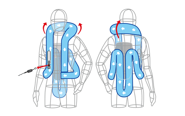 An airbag system is installed in the vest.(Detaching airbag system)