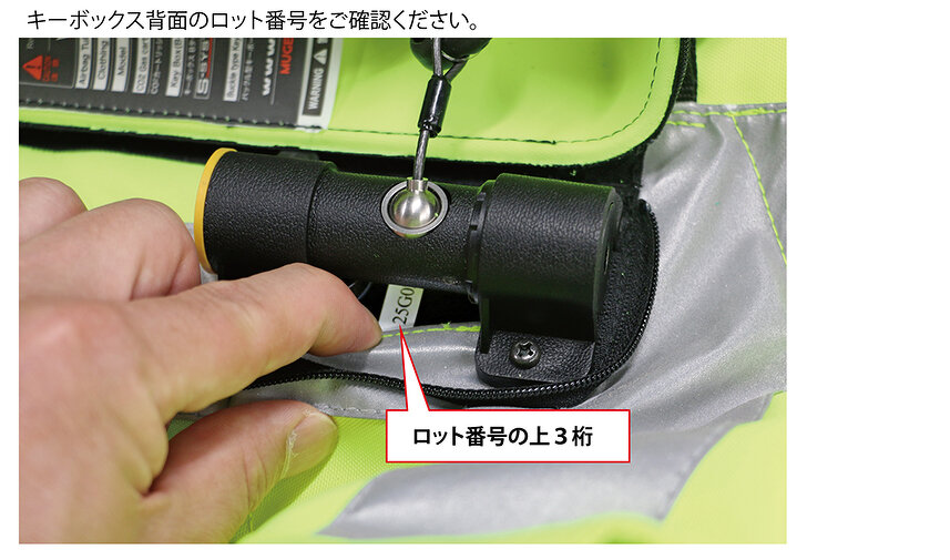お手数をおかけいたしますが下記弊社住所までウェアごとお送りいただければ、改善した新品のキーボックスへと交換させていただきます。