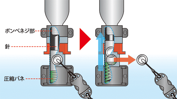 - 一度作動したカートリッジボンベは使用できません。空ボンベは底に穴が開いています。