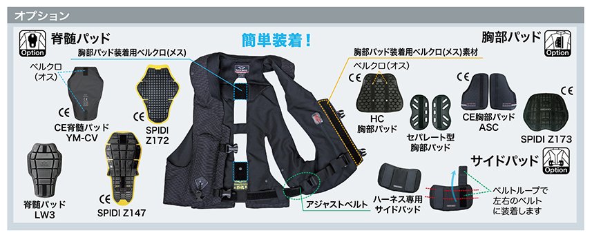 | 備考 | ※一体型エアバッグ・ハーネスタイプは洗濯はできません。お手入れ方法はこちら! |